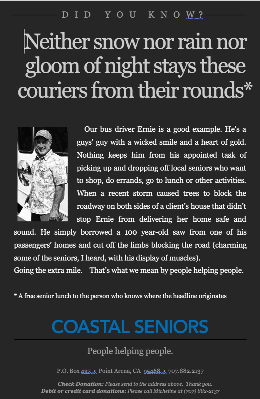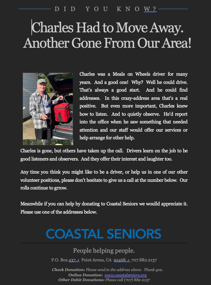 Spotlight on those that make the senior center such a wonderful organization....